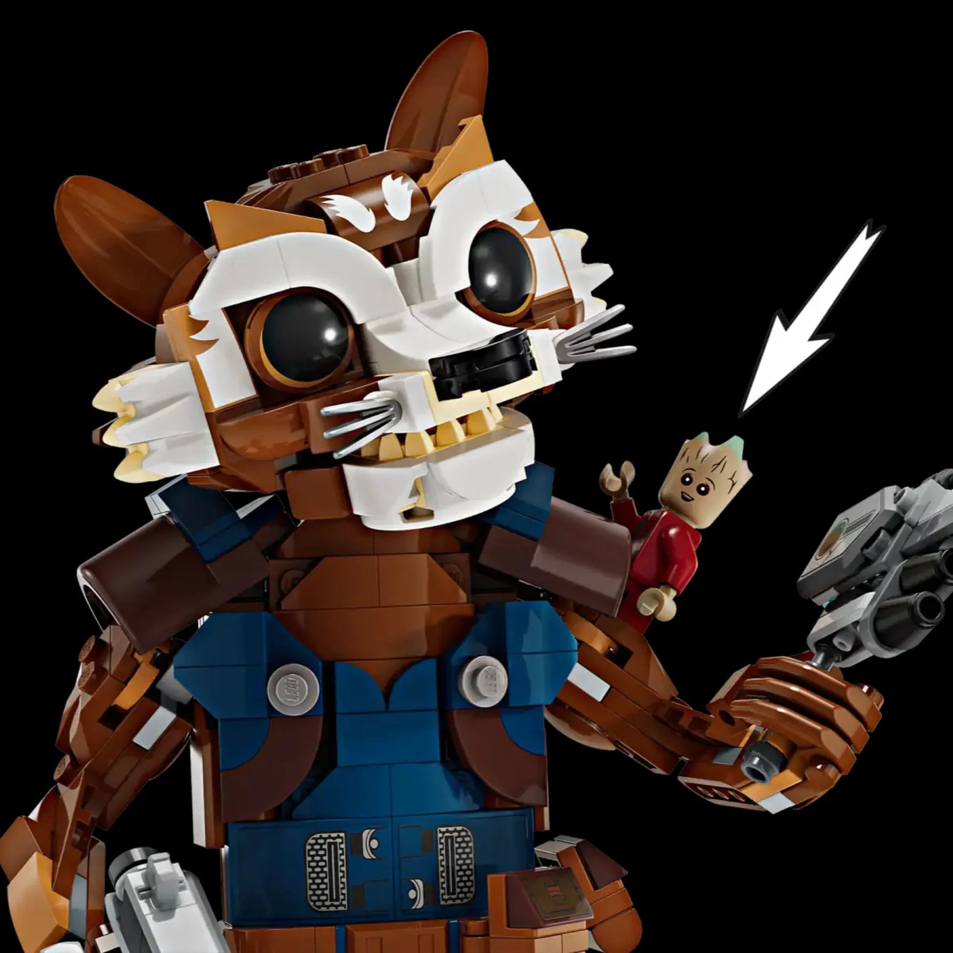 This set features authentic details that capture Rocket's essence, including his signature expression, combat outfit, and the elements of his look.